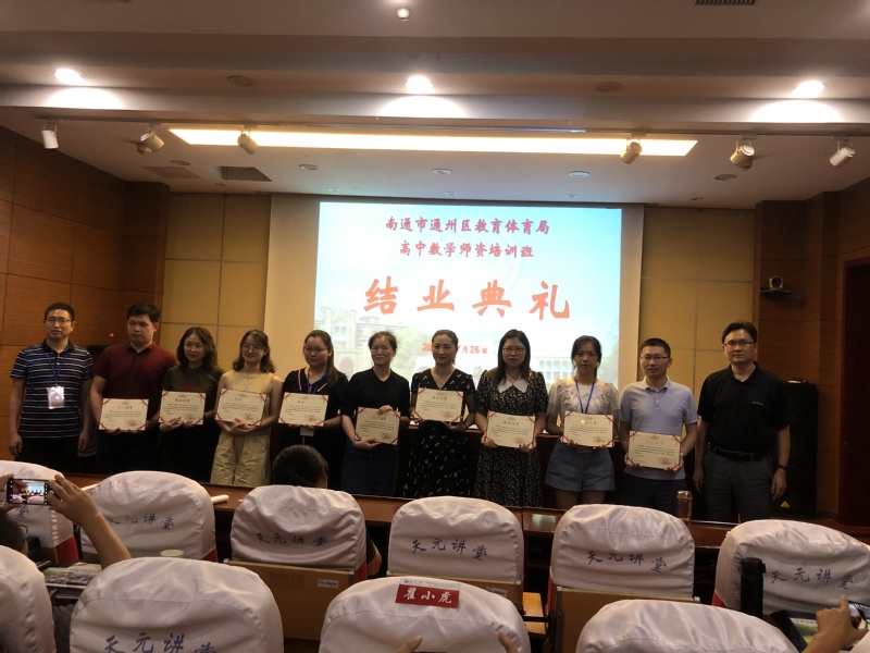 讲座结束后,通州区教师发展中心王惠清主任主持本次培训的结业典礼。首先,四位优秀学员代表分享了自己的学习体会。大家都认为几天的学习开阔了眼界,增强了应对新高考的底气。随后,苏州大学数学科学院副院长翟惠生给培训学员颁发了结业证书,并希望学员们在日常教学中多注意对学生数学思想、数学思维的培养。