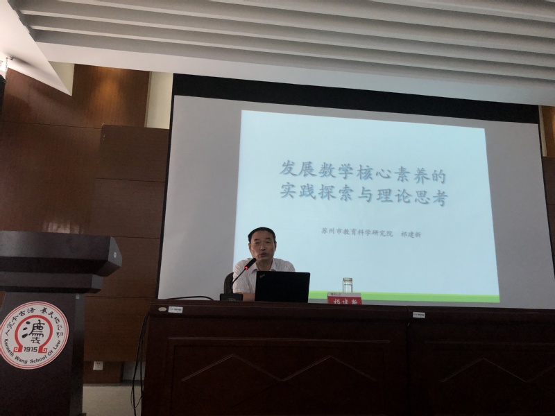 7月31日下午,开班典礼在苏州大学天元讲堂如期举行。通州区教师发展中心张晓鹏老师、数学科学学院副院长翟惠生以及来自通州区多所中学的88位初中数学教师参加了此次开班典礼。开班典礼由平潮实验初中徐小健老师主持。翟院长代表苏州大学致欢迎辞,并代表苏州大学对来自通州区的领导和全体学员表示了热烈欢迎并介绍了苏州大学的发展历史、科学研究、人才培养等情况。张晓鹏老师做了开班动员讲话。