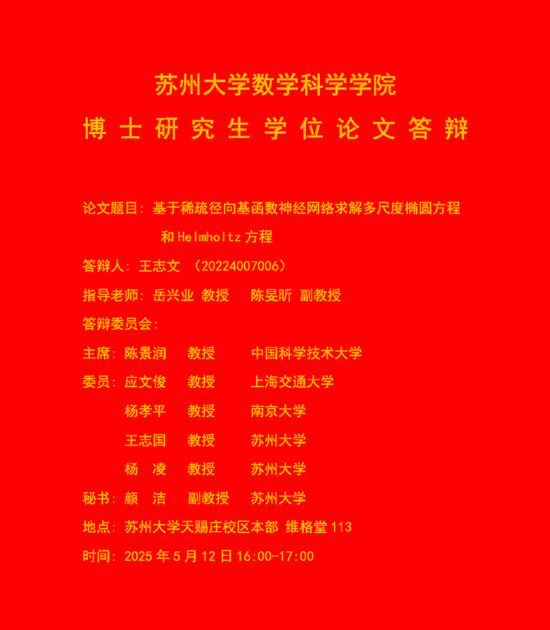 苏州大学数学科学学院博士研究生学位论文答辩(王志文2025.5.12)