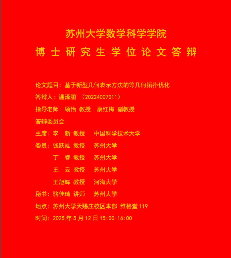 苏州大学数学科学学院博士研究生学位论文答辩(温泽鹏2025.5.12)