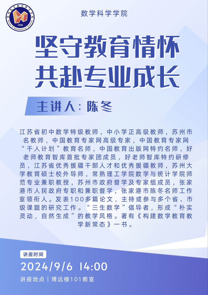 【讲座报告】坚持教育情怀,共赴专业成长——陈冬