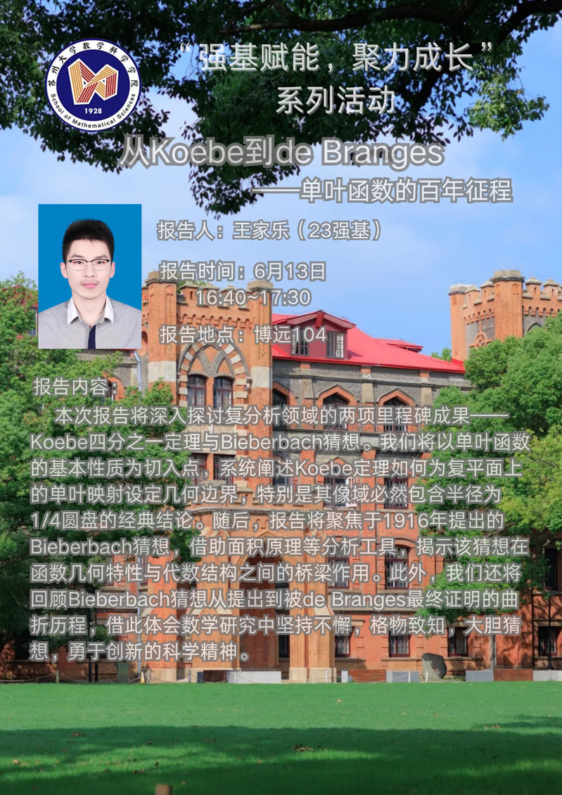 “强基赋能 聚力成长“系列报告(4)——从Koebe到lde Branges——单叶函数的百年征程
