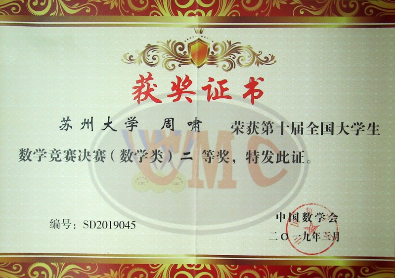 | 19 | 罗燚 | 男 | 江苏省 | 苏州大学 | 数学与应用数学(师范) | (全国赛)数学专业 | 二等奖 |