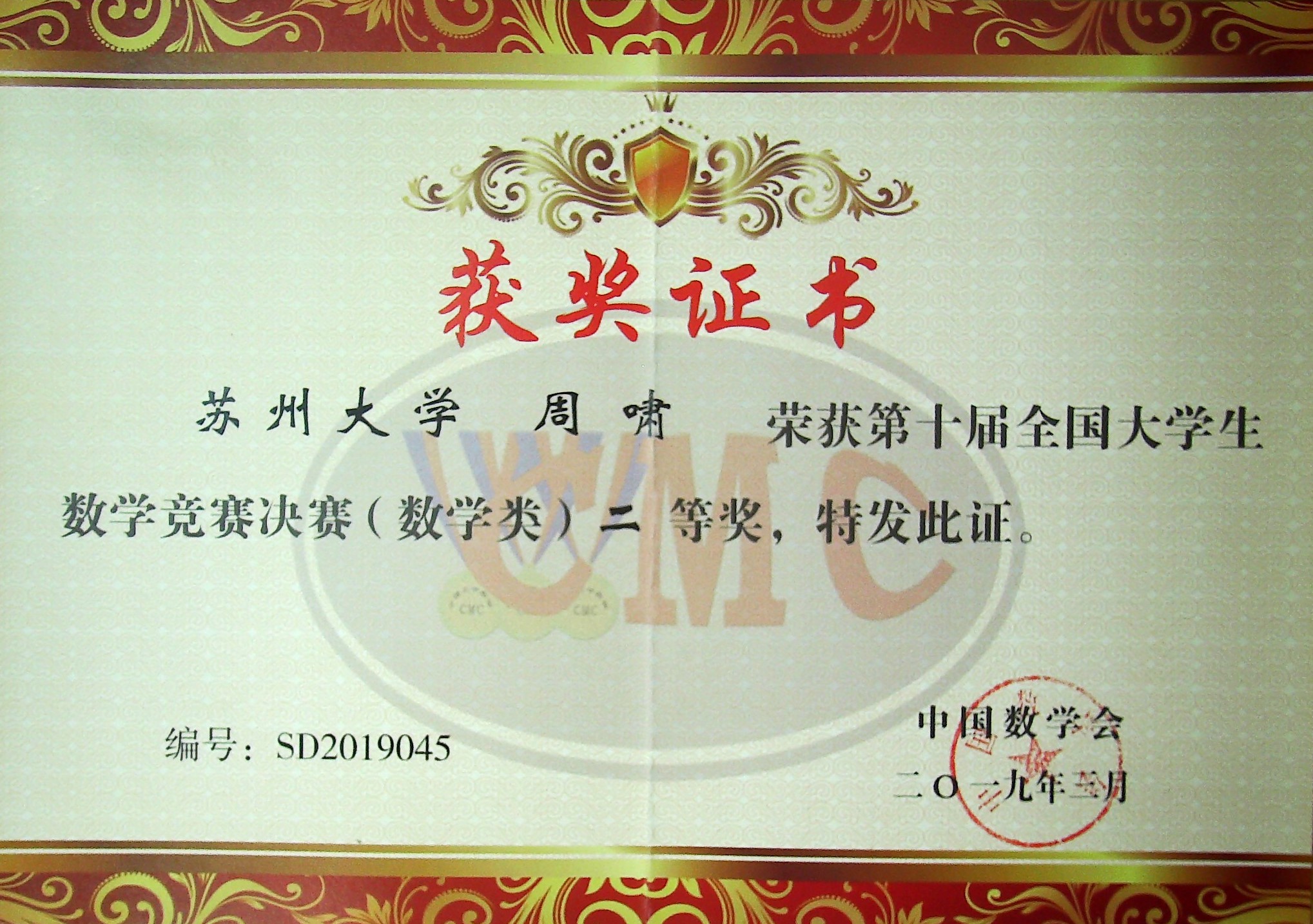 | 22 | 袁智镕 | 男 | 江苏省 | 苏州大学 | 信息与计算科学 | (全国赛)数学专业 | 二等奖 |