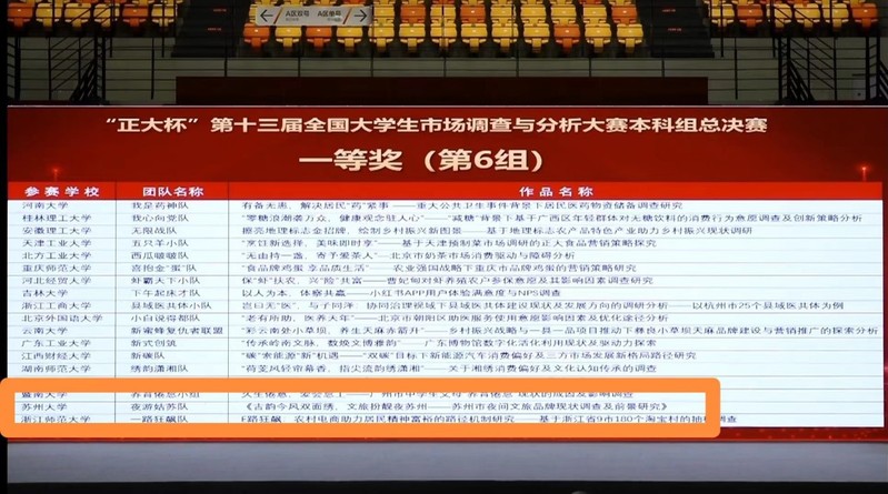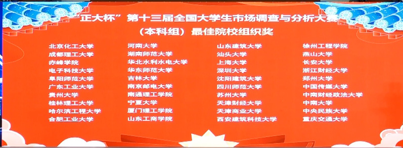 5月28日,“正大杯”第十三届全国大学生市场调查与分析大赛总决赛正式落下帷幕。经过理论知识赛、校赛、企业命题赛、省赛层层筛选,我院有3位本科生入围全国总决赛并获国家级一等奖,此外,我院有6人获国家级三等奖、6人获省级一等奖、3人获省级二等奖。与此同时,我院作为该项赛事的组织学院,荣获全国(本科组)最佳院校组织奖。