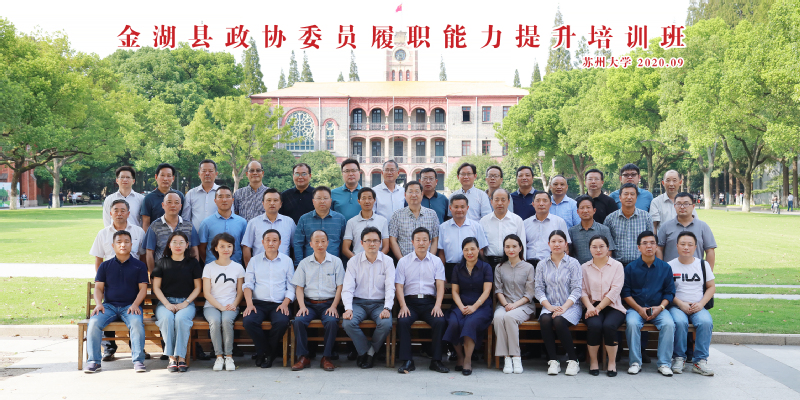 9月25日至9月30日,“金湖县政协委员履职能力提升培训班”在我校天赐庄校区精正楼二楼学术报告厅顺利举办。来自金湖县政协的40位学员参加了此次培训。中国人民政治协商会议金湖县委员会副主席、工商联主席杨发余,中国人民政治协商会议金湖县委员会副主席高昌萍,苏州大学数学科学学院副院长、苏州大学干部培训学院副院长翟惠生出席了开班典礼,杨发余主席和翟惠生副院长分别做了讲话,班主任蒋彤敏老师主持了开班典礼。