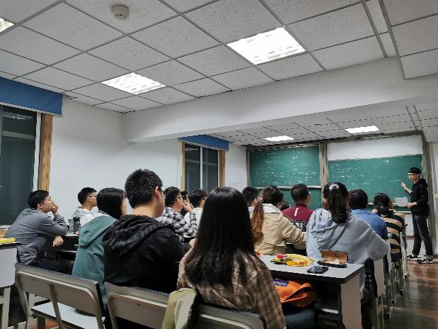 参加沙龙活动的同学主要包括三位同学所在的课题组和其他感兴趣的同学共计二十余人。活动由孙志伟主持,在介绍了本次学术沙龙的基本情况之后,首先由付文豪博士主讲。付文豪博士从优化最基本的概念讲起,深入浅出地介绍了非线性优化领域的主流问题和计算技术,并进一步延伸到本人当前的研究领域。同学们之间积极交流、主动提问,形成了良好的学习氛围。
