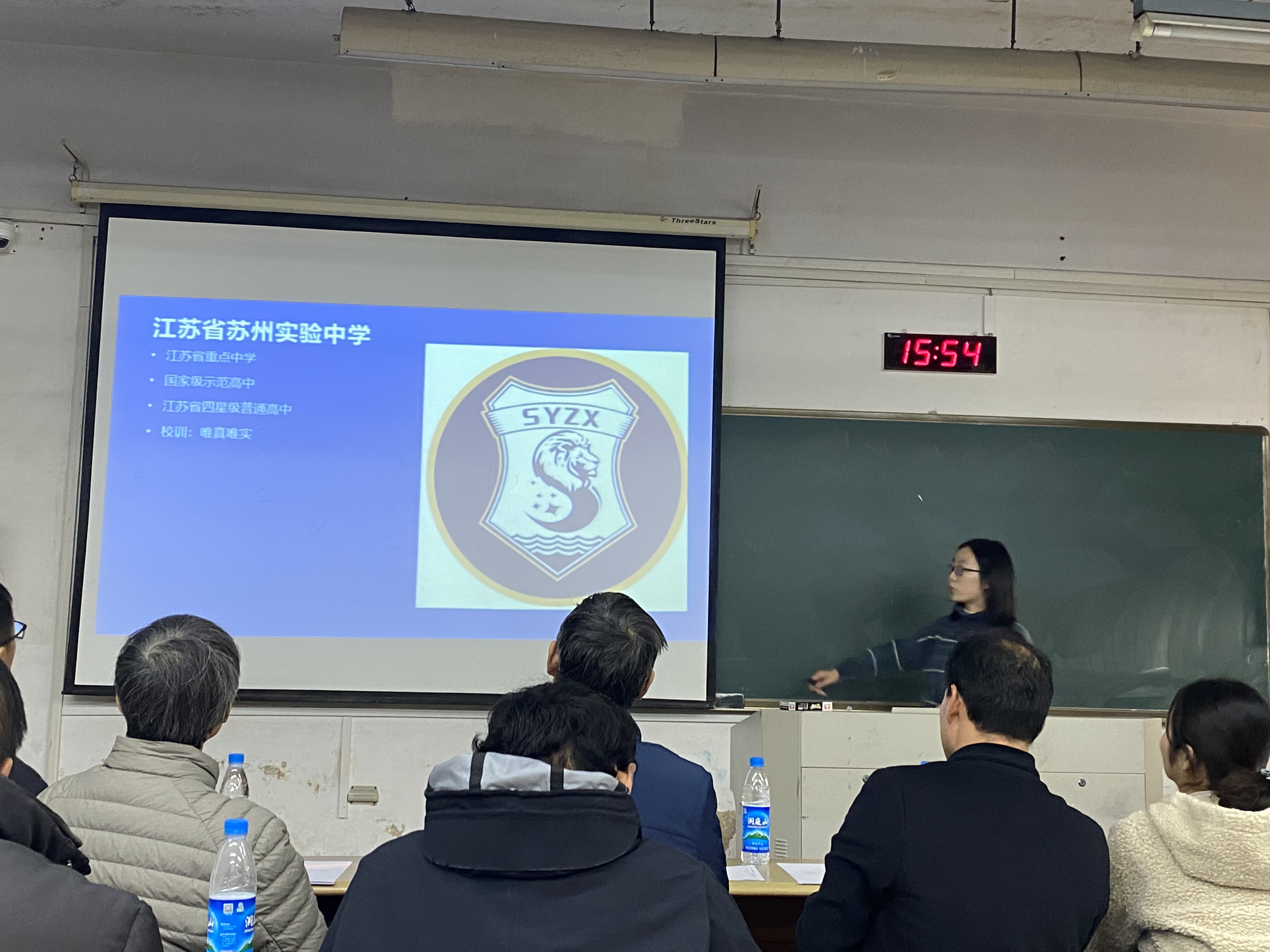 实习不仅仅是个人任务,同时也是小组团结协作、集体进步共同成长的过程。在校级优秀实习小组评选过程中,江苏省苏州实验中学、苏州工业园区星港学校、苏州市第十六中学校三个实习小组分别就小组工作进行了汇报。实习指导老师就每个同学的汇报对每个同学进行提问和交流。