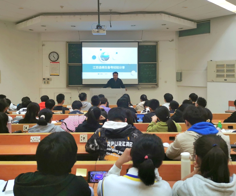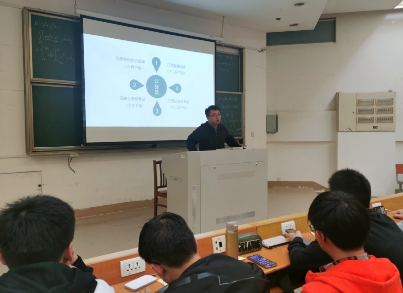 卜鹏程学长成功入选江苏省2021年名校优生选调,他结合自身经历及,生动风趣地给同学们讲解了“选调生的分类及介绍”、“选调生的报考情况”、“选调生的复习备考”等内容,让同学们对这一政策有了直观的认知,并对未来的职业生涯规划有了更深入的思考。