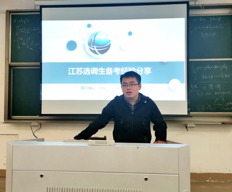 11月21日下午,苏州大学政治与公共管理学院2018级研究生年级大班长卜鹏程,在东教楼309与数科院同学们分享了江苏省选调生的备考经验。辅导员陈子晔老师对卜鹏程学长的到来表示感谢并主持了讲座。