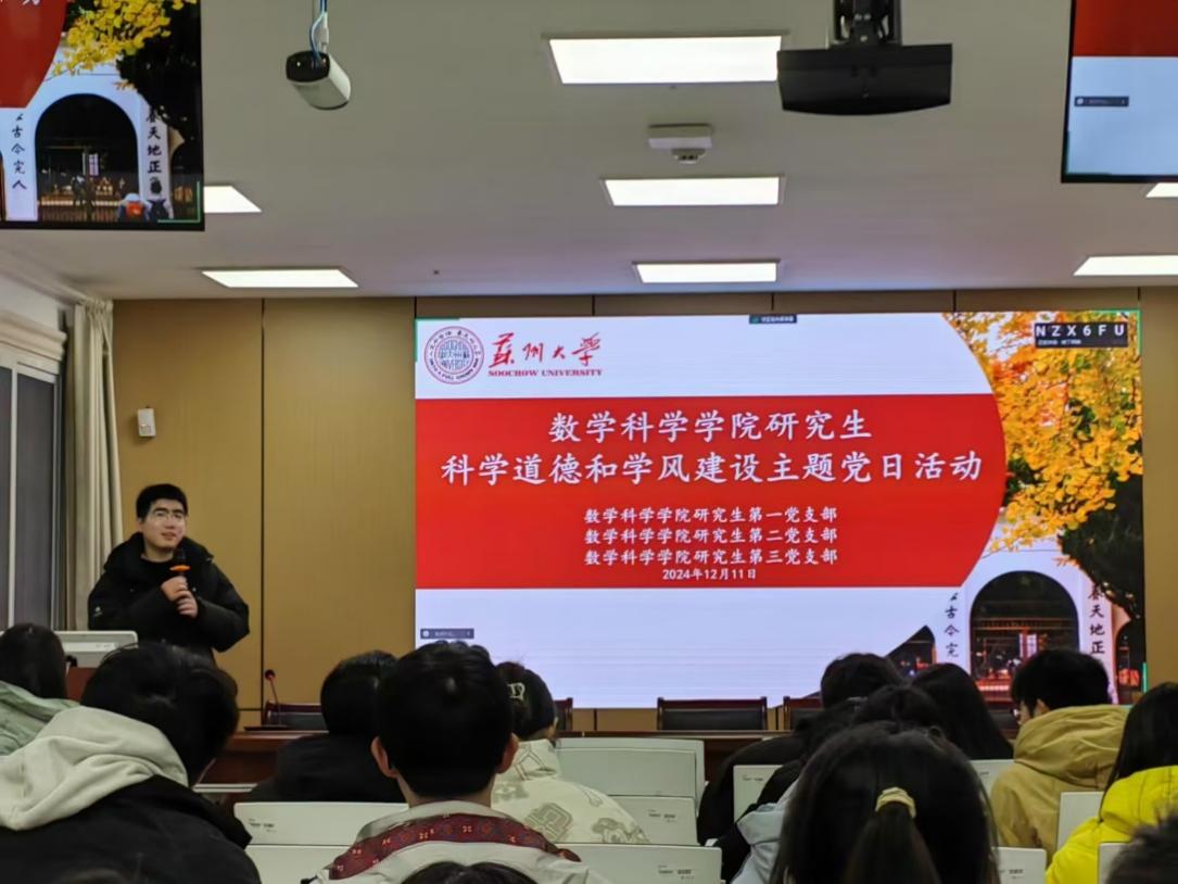为了进一步加强研究生的科学道德教育和学风建设,着力培养德才兼备、全面发展的创新型人才,我院研究生第一、第二、第三党支部于12月11日下午,在精正楼103教室联合举办了研究生科学道德和学风建设主题党日活动。活动邀请了三位荣获国家奖学金的优秀学生代表——韩善恒,张彤以及温泽鹏同学进行经验分享。