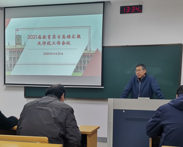 会议最后,严亚强老师就本次会议中同学们的汇报提出建议,指出在汇报总结时,我们不能只关注自身,还要学会发掘实习指导老师的优点,这一点是我们目前同学们做得不到位的一点。