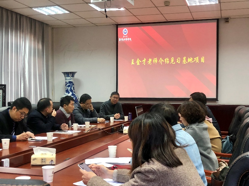 仪式上,王金才老师首先介绍了见习基地项目开展的详细计划,就中学和高校共同关注的课堂教学,教学研究等进行了规划。希望通过见习项目的实施,能够更好整合双方资源,进一步发挥高校办学优势,深化师范教育改革,不断探索师范生的培养实践,提高师范生的培养质量。