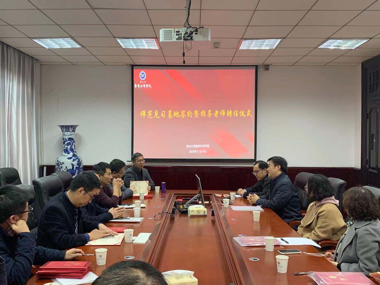 为提高学院数学师范生的实践技能,着力培养优秀数学师范人才,经友好协商沟通,苏州市区高新区和工业园区的部分中学与我院达成协议共建师范专业见习基地。2020年11月29日下午,师范专业见习基地签约暨指导教师聘任仪式在天赐庄校区精正楼三楼会议室302举行。