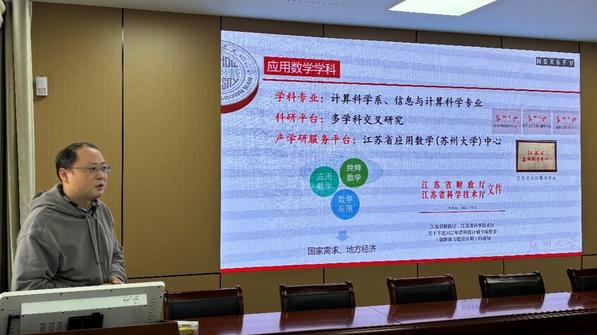 马欢飞教授代表江苏省应用数学(苏州大学)中心汇报了团队在人工智能方面所开展的工作和取得的成绩。