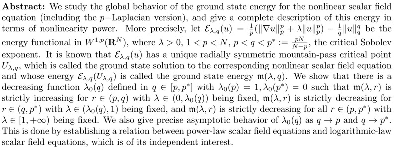 报告题目:非线性分析系列报告(5)——Global behavior of ground state energy of the nonlinear scalar field equation