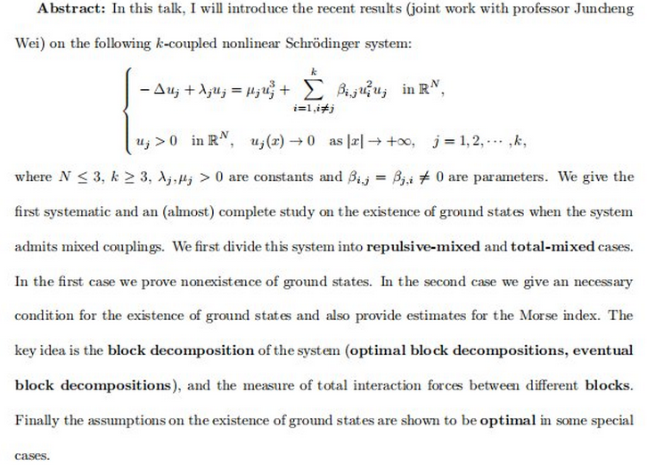 报告题目:非线性分析系列报告(4)——Ground states of Nonlinear Schrodinger System with Mixed Couplings