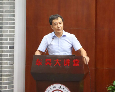 开学典礼在全体师生嘹亮庄严的国歌声中正式开始。曹永罗院长首先致辞,他代表学院对2023级新生的到来表示真诚的祝贺与热烈的欢迎。曹永罗院长为新生们介绍了学院雄厚的师资力量和学术底蕴,鼓励同学们设立新目标、重新再出发。同时,曹永罗院长强调进入大学后的每位同学都处在同一起跑线上,不应纠结过去的得失,应从零开始树立远大目标,保有对未来美好的憧憬并为之奋斗。曹永罗院长指出应将“消极内卷”转化为“比学赶帮”,提升自我、完善自我的同时,也要带动宿舍、班级乃至学院、学校的学风建设,以互学共勉的团队精神、不弱于人的坚定信心书写自己崭新的人生华章,共创苏大数学科学院的辉煌未来。
