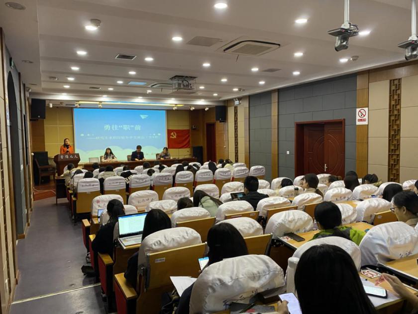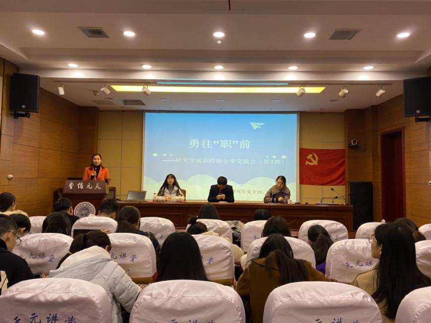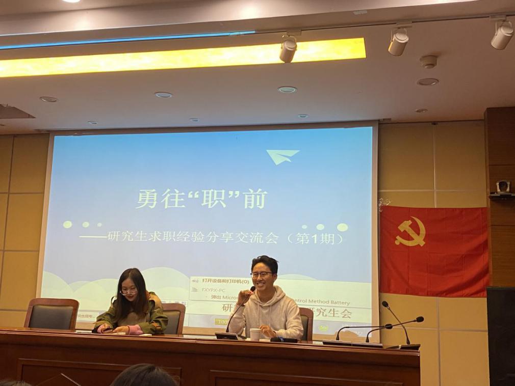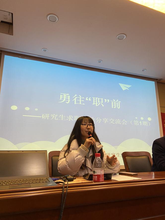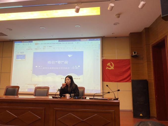 首先,辅导员尹老师对几位嘉宾的到来表示了感谢,也对今年的就业形势进行了分析,她讲道:今年疫情背景下,就业形势更为严峻,为给即将毕业找工作的2021届毕业生提供一些求职方法和经验,也让研一、研二同学提前了解到求职的一些现状和问题,提前为求职做积累,研究生党支部、研究生会精心筹备了这一次求职经验分享活动,希望各位同学认真聆听学习。