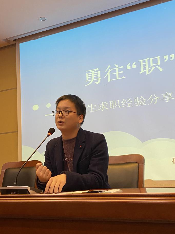 2019届数学硕士研究生尤彪现在苏州大学附属中学高中部任职数学老师。他以幽默风趣的语言介绍了他的求职经历,他向我们建议:首先,要明确是要读博还是要工作求职;其次,要注意利用实习期间的各种学习机会,要多听课,多向带教老师和其他优秀教师请教,不断的丰富自己经验;最后,要抓住每一次机会,要大胆的去沟通交流,脚踏实地的做事,机会是给有准备的人的。