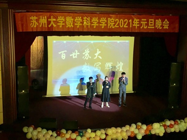 12月26日晚,苏州大学数学科学学院元旦晚会在本部敬贤堂举行,学院老师与学生欢聚一堂,共同迎接即将到来的2021年。