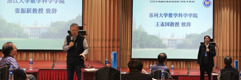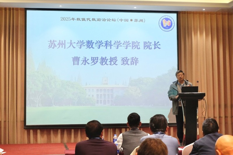 苏州大学数学科学学院院长曹永罗教授在开幕式上发表了热情洋溢的欢迎辞,诚挚欢迎各位专家的到来,并表达了衷心的感谢。清华大学贾仲孝教授代表会议学术委员会阐述了本次会议的主旨,指出数值代数作为现代科学与工程计算的根基,正不断与人工智能、大数据、量子计算等领域相互交叉渗透。
