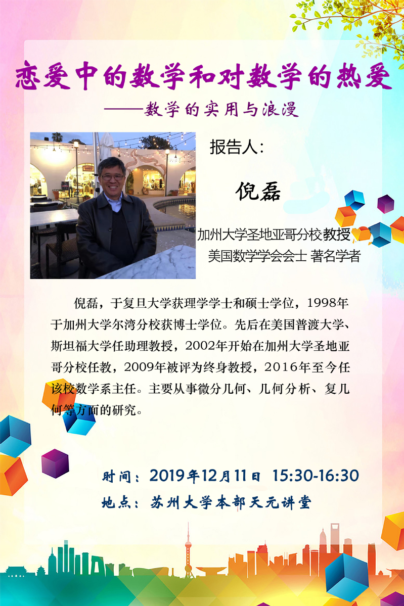 天元讲堂(12.11):恋爱中的数学和对数学的热爱——数学的实用与浪漫