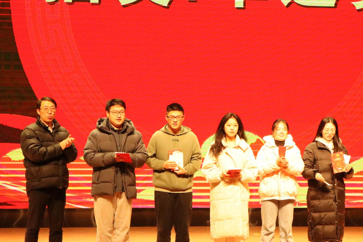 18时30分,伴随着钟楼悠扬的钟声,元旦晚会正式开始。晚会对2023学年获得数学学科竞赛优秀成绩的学生进行了表彰。院长曹永罗老师和院党委书记逢成华老师分别为在2023年全国大学生数学竞赛、2023年全国大学生数学建模竞赛、2023年美国大学生数学建模竞赛、2023年市场调查与分析大赛等赛事中获国奖的本科生与研究生同学颁发了荣誉证书,并以此激励更多的同学努力拼搏,奋发向上。