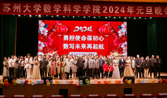 12月23日晚, “勇担使命葆初心 数写未来再起航”—数学科学学院2024年元旦晚会在校本部存菊堂正式拉开帷幕。院党政领导、在职老师、退休老师与学生代表们欢聚一堂,共同度过了一个美好而难忘的夜晚。晚会前,老师们精心录制的祝福视频暖场播放,同学们收到了美好的新年祝愿,浓厚温馨的师生情谊融化了冬夜的寒冷。