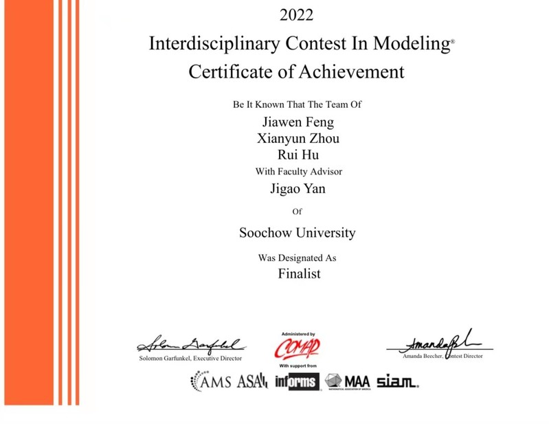 近日,2022年美国大学生数学建模竞赛(MCM/ICM)评审结果正式公布。我院3人获特等奖提名奖(Finalist),17人获一等奖(Meritorious Winner),40人获二等奖(Honorable Mention),获奖数量和获奖等级再创新高。