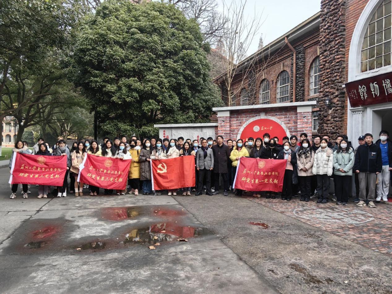 习近平总书记在党的二十大报告中指出:“加强新时代廉洁文化建设,教育引导广大党员、干部增强不想腐的自觉,清清白白做人、干干净净做事”,在二十届中央纪委二次全会上强调:“要在不想腐上巩固提升,更加注重正本清源、固本培元,加强新时代廉洁文化建设,涵养求真务实、团结奋斗的时代新风”。为了推动廉洁价值理念融入日常、加强廉洁自律教育,2024年1月3日,数学科学学院研究生党支部开展了廉洁教育主题党日活动,参观了苏州大学廉洁文化主题展,党委书记逢成华、副院长兼纪检委员王志国、组织员乔治、研究生辅导员尹伊以及研究生党员们参加了此次活动。