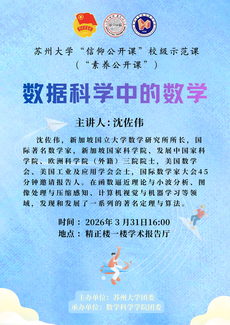 苏州大学“信仰公开课”校级示范课(“素养公开课”)——数据科学中的数学