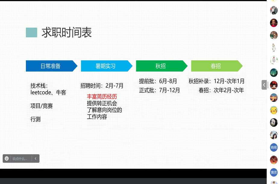 王海栋详细介绍了就业求职的流程,包括求职时间表、途径以及职业赛道的细分。杜灵钰针对应用统计专业的就业方向进行了深入分析,探讨了不同方向的特点和利弊,提出了求职时的考量建议。曲剑锋分享了考公流程及备考经验,为有志于进入公务员队伍的同学提供了实用指导。