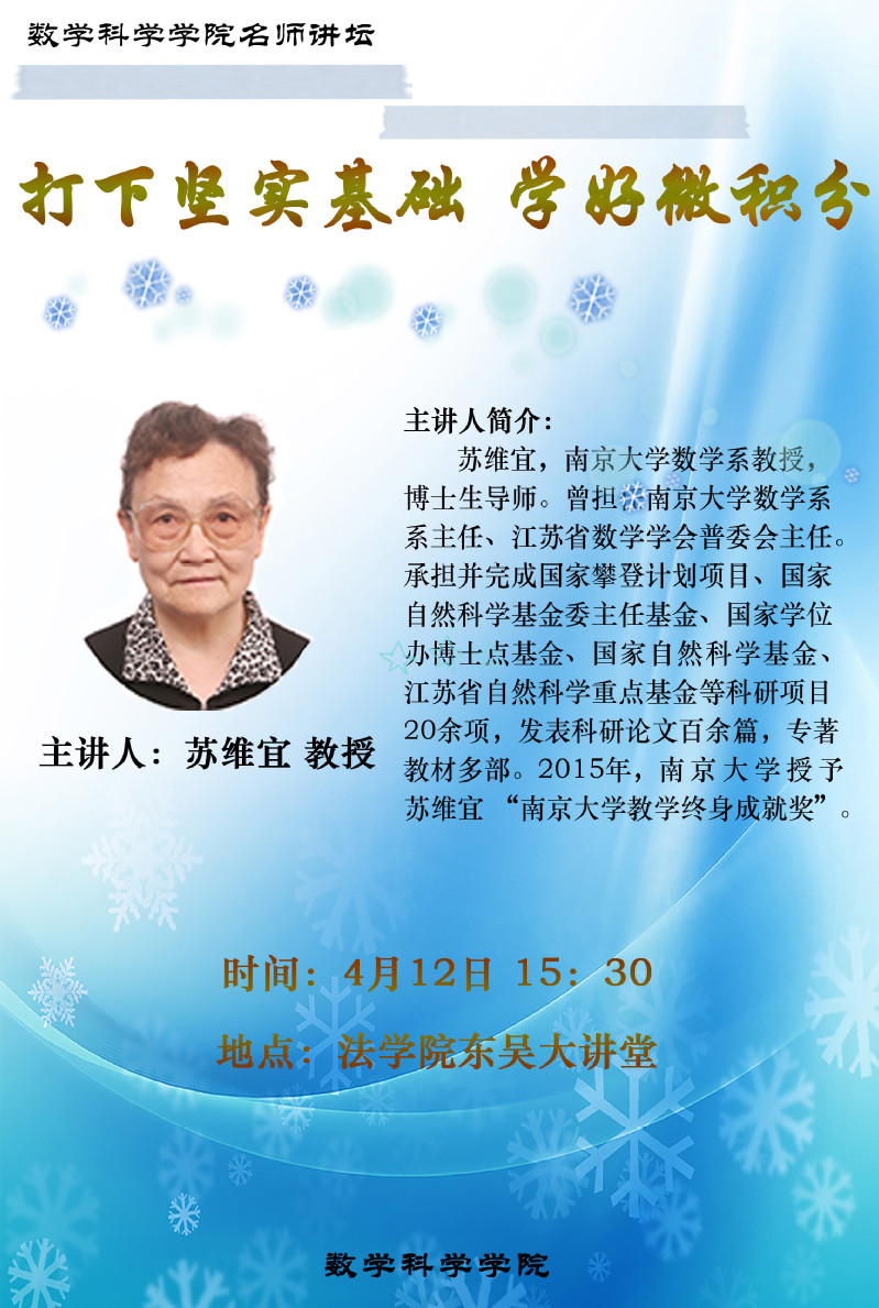 品牌专业名师讲坛——苏维宜:打下坚实基础,学好微积分(4.12)