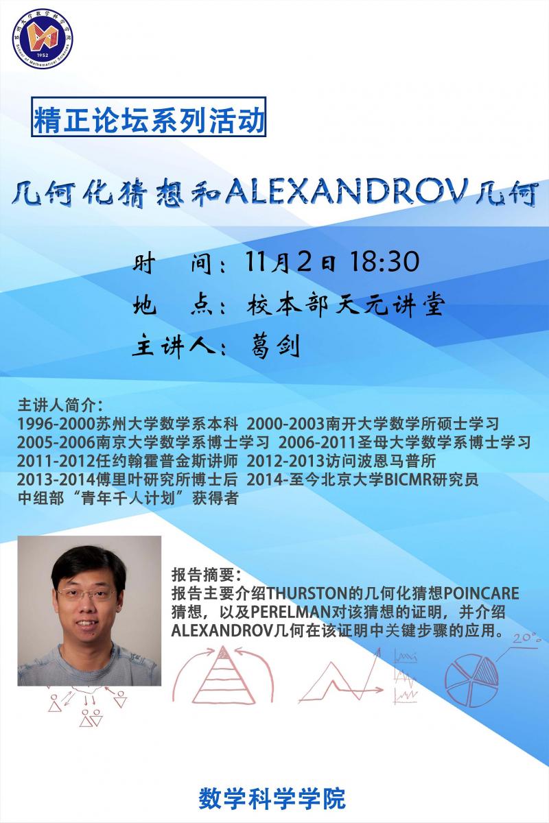 天元讲堂(11.2):几何化猜想和ALEXANDROV几何