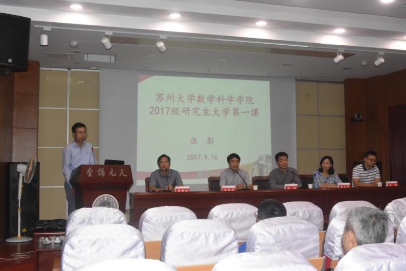 开学典礼结束后,院长张影教授以《数学,我们共同从事的事业》为题给2017级研究生上了新生第一课。课上,张院长为大家介绍了数学科学学院的历史与现状,并结合学院培养出的杰出人才,勉励大家继承传统、刻苦钻研,明确目标,他希望2017级全体研究生在学习科研过程中遵守学术道德,崇尚科学精神,努力培育数科院特有的优良学风。