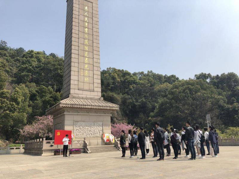 同志们在庄严的烈士纪念碑前肃立,随着研究生第一党支部副书记尤彪同志的悼词追忆革命先烈英勇光荣的事迹,思考应当如何继承和发扬他们的精神,继续为中华民族的伟大复兴贡献自己的力量,并在纪念碑下重温入党誓词,庄严承诺为共产主义奋斗终身。随后在《献花曲》中,研究生第一党支部副书记尤彪同志及研究生第二党支部书记钱月凤同志敬献花圈。同志们庄重的三鞠躬表达了对先烈的深切哀悼和无尽的敬仰之情。