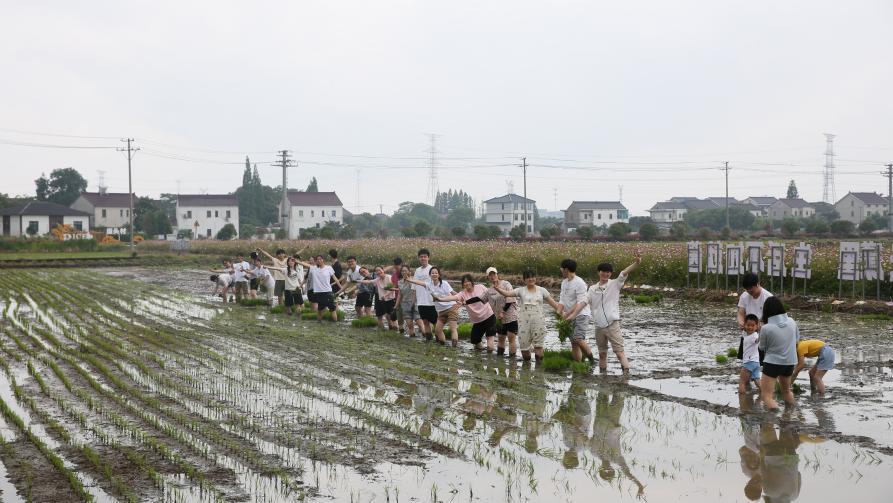 村上长漾里,犹如一幅掩映在江南山水中的、静谧的田园画卷。包粽子环节,晶莹的糯米,甘甜的蜜饯,翠绿的粽叶……小巧的粽子在同学们手忙脚乱的动作之间终于成型。随后,我们走向田间,体验插秧的乐趣。脚下的泥土柔软湿润,插下的秧苗如同希望的种子,迎风摇曳,满怀生机。午后,蒋老师带我们学习了二十四节气的知识。蒋老师讲述着每一个节气背后的故事和文化内涵,让我们对自然的变化有了更深的理解。随后,我们品茶论道,滋润心田。虽然对茶艺一知半解,但茶香沁入心脾,我的内心竟也十分满足。这个端午节,在村上长漾里,我们找到了人与自然和谐共处的美妙感觉,找到了心灵的宁静与安详,更感受到了学院的用心。