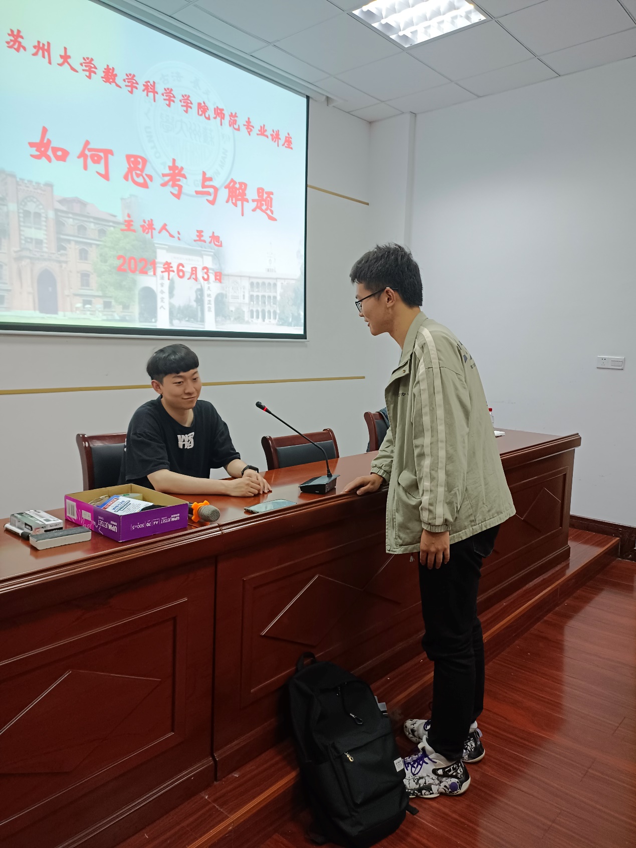 6月3日晚,我院邀请苏州大学苏州校友会副会长、校外科技公司负责人王旭老师,在精正楼学术报告厅,为2019和2020级师范专业同学带来了题为“如何思考与解题”的讲座。