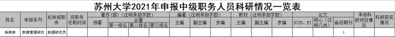苏州大学数学科学学院2021年学生思想政治教育、教育管理研究系列中级职务申报人员的基本、科研信息学校职能部门确认,反馈至我院,现进行公示: